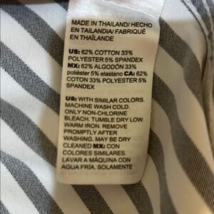Lovely White and Black stripe blouse. Button down in a soft cotton, spandex and polyester blend