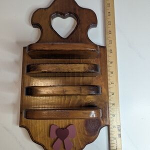 Enhance your home decor with this charming wooden wall organizer. Featuring a heart cutout and a cute bow accent, this piece adds a touch of warmth to any room. The rich brown finish complements a variety of styles.