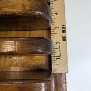 Shelves are spaced 1 inch apart. Perfect for thimbles or in the bathroom to hold washclothes. Freshly sealed for perfection.