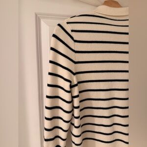 Elegant knit with cream and black stripes. Ideal for chic layering.