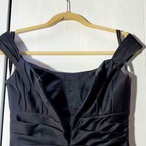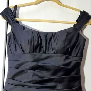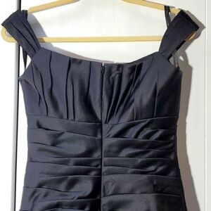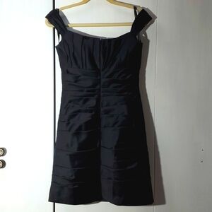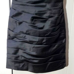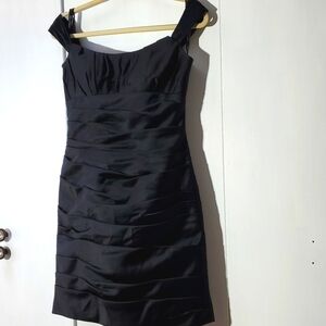 Bill Levkoff- Womens Black Satin Ruched Pleated bodycon mini Dress Sz.6