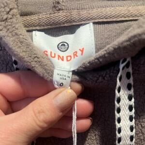 Sundry Faux Sherpa Striped Sleeve Hooded Cozy Soft Sweatshirt NWT O/XS Lounge