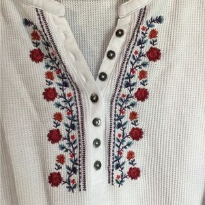 Woman’s size 4X woman, within long sleeve, pristine, white top with embroidery.R