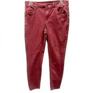 Chic ankle-length jeans in a burgundy/maroon hue. Perfect for casual outings. Good pre-owned condition, no damage or flaws. Materials at in pics.