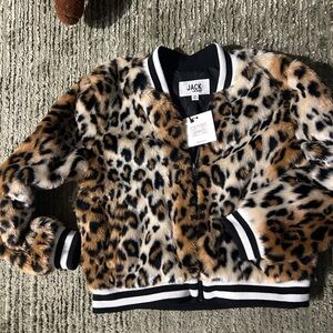 BB Dakota Leopard Print Faux Fur Bomber Jacket