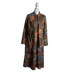 Vintage 1970s Sears Dress Cardigan Taupe Floral 2 Piece Set Maxi US Size 10.