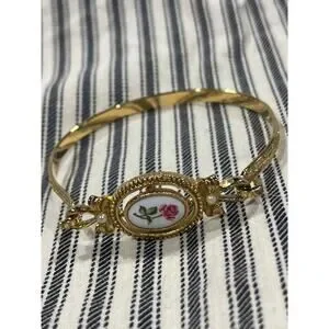 Bracelet gold tones flower floral pearl fantasy victorian danty simple. Avon brand. Used great condition.