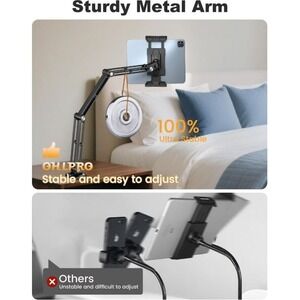 OHLPRO Aluminum Tablet Wall Mount Holder 360° Adjustable & Extendable 3-Stage Arm for iPad Pro/Air/Mini, Galaxy Tab 5-13" Heavy Duty Metal Stand for Kitchen, Office, Bedroom