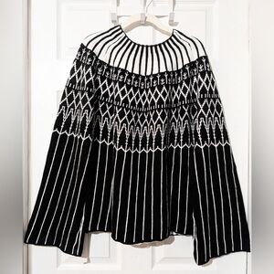 Commense Fair Isle Pattern Bell Sleeve Sweater