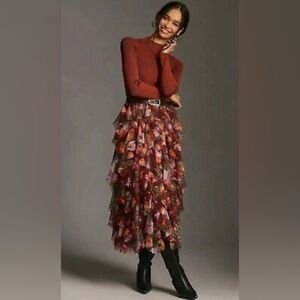 Anthropologie Cherie Ruffle Tulle Skirt New choose Size Small , XL Floral Layere