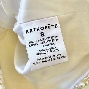 NWT RETROFETE Deema Pearl Embellished Strapless Crepe Mini Dress Ivory. Size Small Women’s. In NWT condition - new item, tags attached. Material: poly. Dress is made from crepe embellished with faux pearls - they artfully stripe the silhouette in corset-inspired lines. strapless. Lined.