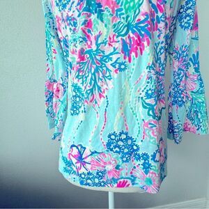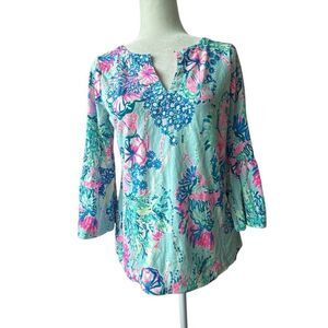 Lilly Pulitzer Ginger Top Floral Green V Neck SZ XXS NWOT
