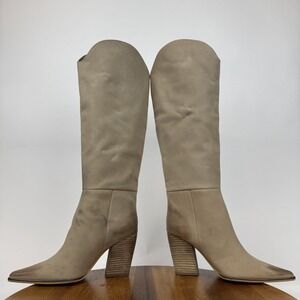 New Womens Steve Madden Croft Beige Leather Heeled Riding Boots Size 5.5 M NWOB