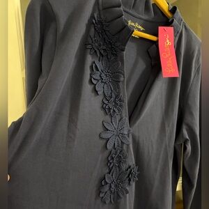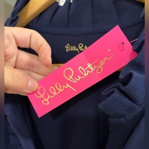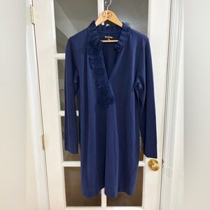 Lilly Pulitzer Clary Polo Dress - Size XL - NWT - true Navy color - long sleeves - 97% cotton - unlined - beautiful flowers details in front