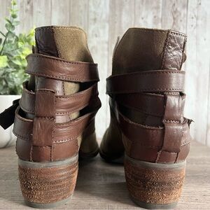 Elevate your style with these chic olive and brown ankle boots. A beautiful countryside style that fits the Ralph Lauren esthetic. There is one minor blemish on the toe amas shown in photo and pointing to. Size 8