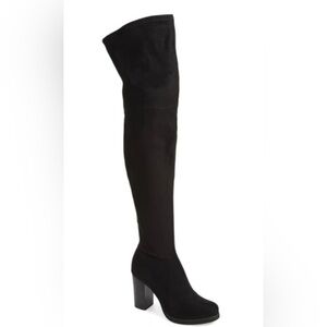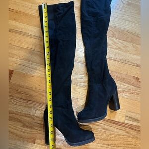 Calvin Klein Bisma Suede Over the Knee Chunky Heeled Boots in black size 5.5.