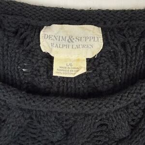 Ralph Lauren Denim & Supply Black Cable Knit Cotton Sweater Unisex L/G