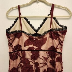 Lulus Size L Alluring Dream Burgundy Floral Mesh Lace Trumpet Midi Dress