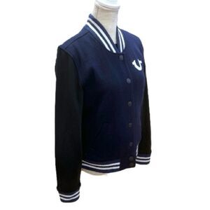 True Religion Souvenir World Tour Embroidered Varsity Jacket in Blue Size L