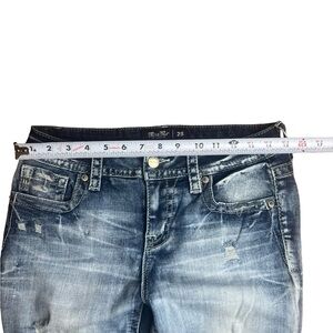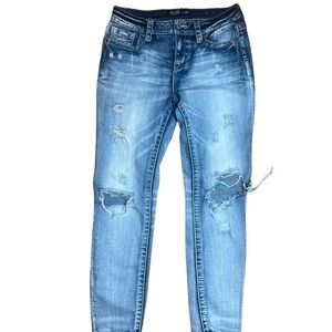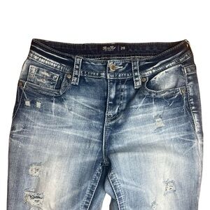 Miss Me Jeans Women's 28 (30x28) Ankle Skinny Mid-Rise Distressed Blue Denim