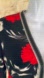 This elegant long sleeve dress features a striking black and red floral pattern, perfect for any occasion or the holidays. The sophisticated design offers both style and comfort. The main part of the dress is polyester and I’m not sure what the neck and waist details are made from. This dress appears to be handmade. A hook and eye is missing above the zipper on the back of the dress. There is silver stitching in the neckline and waist of the dress. If you’re looking for something that is unique and possibly one of a kind, this could be for you. No flaws except for the missing hook and I don’t think it detracts from the dress.