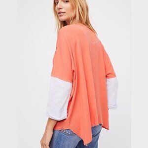 Free People We the Free “Star” Henley Top in a soft coral hue. This relaxed, slouchy henley features a flattering wide neckline, partial button placket, quarter length sleeves, asymmetrical distressed hem, and an easy, lived-in Free People vibe that works year-round.