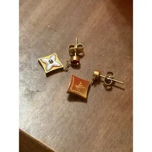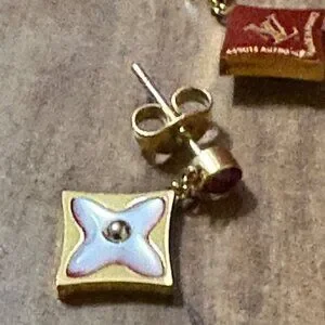 Louis Vuitton 18k Gold & Enamel Flower Drop Earrings Stamped Made In France