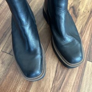 Stylish black ankle boots. Chunky sole for added height. Elastic side panels for easy wear.