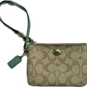 Vintage Coach Peyton Wristlet Wallet Small Beige Green Leather Logo w/ Tag