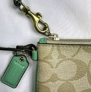 Add a touch of classic Coach style to your look with this vintage Coach Peyton Wristlet Wallet in beige and green. This petite wristlet is perfect for carrying essentials — keys, cards, and phone — while maintaining a timeless, elegant style.