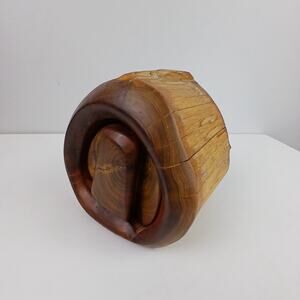This stunning hand-carved stash box is a true work of art, crafted from a solid piece of real hardwood with beautifully preserved natural grain and smooth finish. The organic, spiral design reveals a cleverly concealed hidden compartment, making it both functional and sculptural.