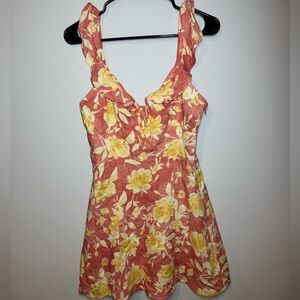 WAYF Floral Ruffle Mini Dress Pink Yellow Roses Size S NWOT