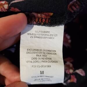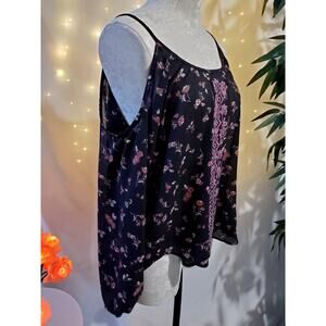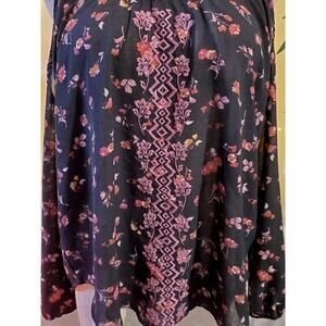 Rewind Women's M Floral Boho Embroidered Lace Cold Shoulder Black Peasant Top