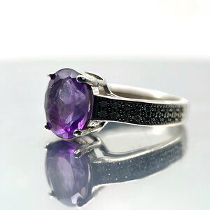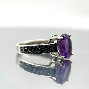 A handmade 925 sterling silver ring featuring a natural purple Amethyst. A great personal statement piece for everyday wear.