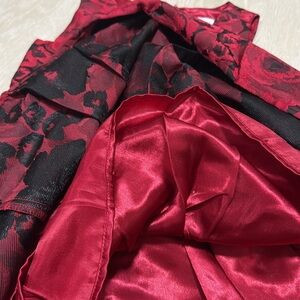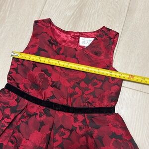 The Children's Place 4T dress features a striking black and red floral pattern perfect for any occasion. Its sleeveless design, complemented by a black belt and pleats, offers a classic yet playful look.