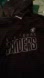 Stylish black cardigan. Features Las Vegas Raiders logo. Comfortable and trendy.