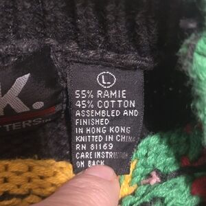 This is a very cool chunky knit sweater! Women's size large, fits smaller. This sweater is pre-loved with normal wear. There are no holes or stains. It has slight color fading from washing over the years. This sweater gives all the vibes!