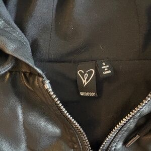 Windsor Womens Cool Factor Faux Leather Cropped Bomber Jacket Black