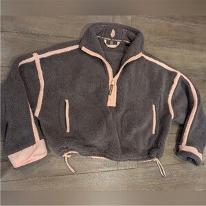 Cozy fleece jacket with half-zip design. Features purple body with pink accents. Perfect for layering.