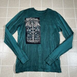 Affliction Shirt Mens XL Long Sleeve Thermal Sword Wings Cross Vintage Y2K Goth