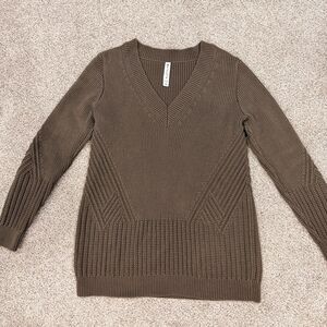 Athleta V-Neck Chunky Knit Tunic Sweater - XS Oversized (Taupe/Brown)