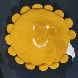 Add warmth with this sunny pillow. Soft and inviting with a cheerful face.
