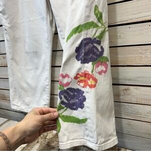 Vintage Coldwater Creek White Floral Wide Leg Cropped Jeans Cottagecore Boho 16P