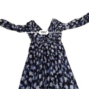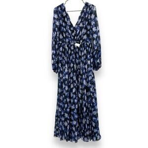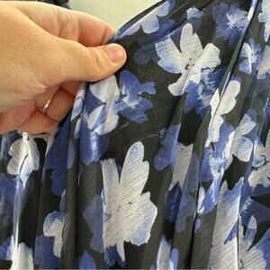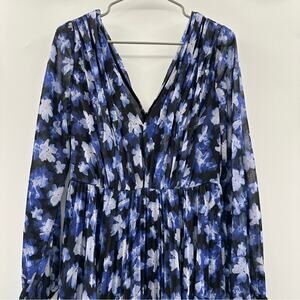 RTR ML Monique Lhuillier Melanie Black White & Blue Floral Maxi Dress