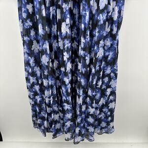 RTR ML Monique Lhuillier Melanie Black White & Blue Floral Maxi Dress Sz 0
