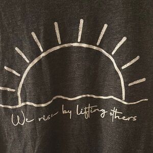 Embrace positivity with this stylish black tank top featuring an uplifting 'We Rise by Lifting Others' design. Perfect for casual outings or workouts.