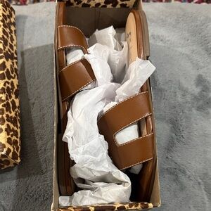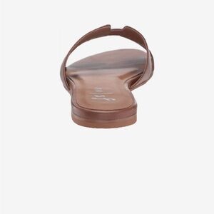 NWT French Sole Alibi Cognac Brown Leather with White Stitching Slide Sandals