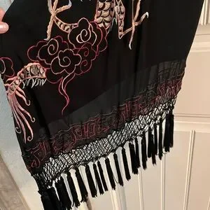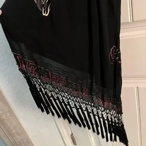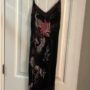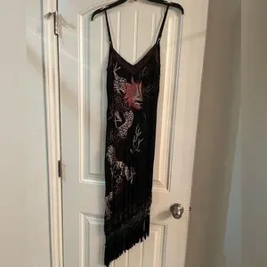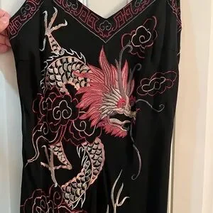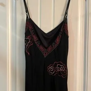 Vintage Sue Wong asymetrical black dress with intricate red embroidery. Excellent condition. Size 6
