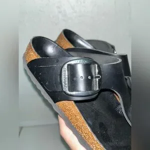 Birkenstock Gizeh Black Leather Sandals – Size 38 (R)