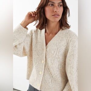 & OTHER STORIES | Button Up Cable Knit Cardigan | Oatmeal/Gray | Small
